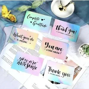 Exquisite appearance: these greeting cards are made of reflective material, which are waterproof, not easy to fade and can emit dazzling colors under the light; The printed text will shine against the dazzling background and easily attract attentions