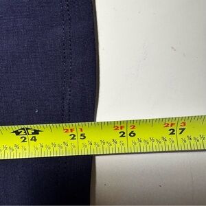Navy blue Jones New York short sleeve, v-neck top with tan and cream crochet trim, gold tone logo at the bottom. NWT, smoke free home.