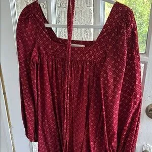 Stylish red long sleeve dress with a subtle pattern. Perfect for any occasion.