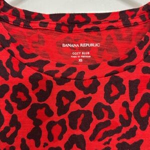 Banana Republic Women’s Short Sleeve T-Shirt XS Red Leopard Animal Print Top
