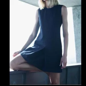 Mini dress made of 100% cotton. Round neckline and sleeveless design. Slit hem. Back hidden in-seam zip closure.