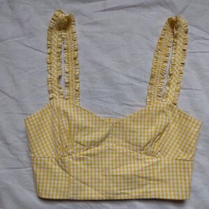 Zara Cropped Yellow White Gingham Tank Top Western Daisy Duke Boho Womens Small.