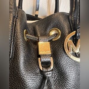 MICHAEL KORS LEATHER CAMDEN DRAWSTRING MEDIUM BLACK HOBO BAG