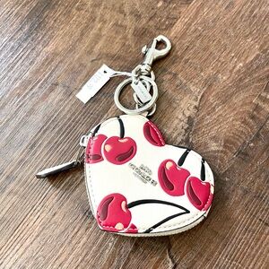 NWT Limited Coach CZ091 Leather Heart Coin Pouch Bag Charm With Cherry Print