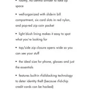 Bill compartment, 6 card slots and zippered coin pocket
