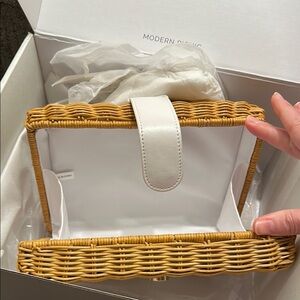 Discover the stylish woven bag in a chic tan color. Perfect for bringing lunch or going on a little picnic for one, this bag combines elegance with practicality.