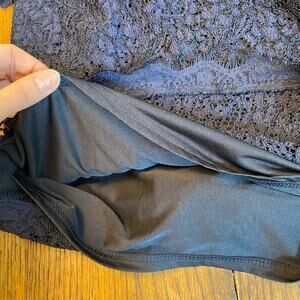 Adrianna Papell Lace Short Evening Cocktail Dress Elegant Navy Blue Women's sz 6
