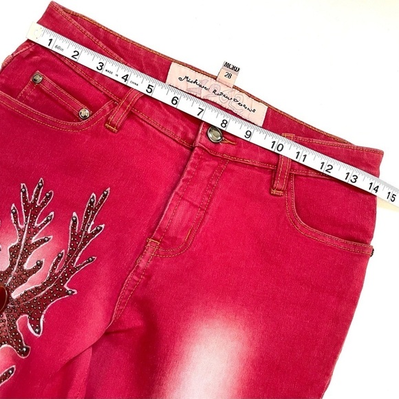 Michael R. Dan MCRD 1962 British embellished red boot cut jeans sz 28