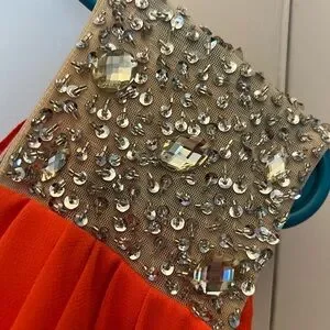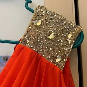 Brand new with tags, beautiful blouse with shiny gems on top shoulder. Zip up on side as shown. Flowy and dressy style.