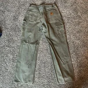 CARHARTT Men's 30x30 Green Double Front Carpenter Pants Original Dungaree Fit