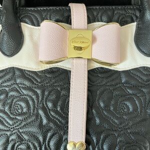 Betsey Johnson Black Quilted Rose Shoulder Tote Bag Black White Pink Bow Large