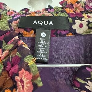 Aqua Floral with gold thread accent Long Sleeve Dress XXL
