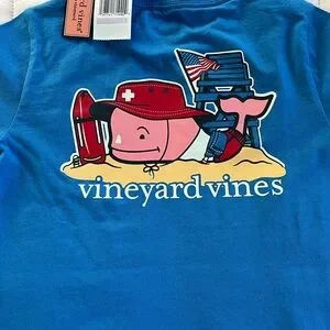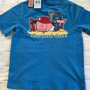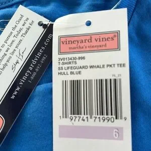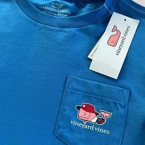 NEW Vineyard Vines Short Sleeve Lifeguard Whale Pocket Tee Hull Blue Size 6