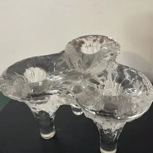 Vintage IGLOO by Kosta Boda Glass 3 Light Candlestick Holder Sweden