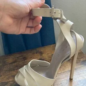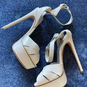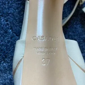 These Casadei leather stiletto sandals in size US 7 EU 37 are brand new and come with a bag. They feature a stylish strappy design, a stiletto heel, and are made of high-quality leather. The beige color adds a touch of elegance to any outfit, making these sandals a perfect choice for a night out or a special occasion.