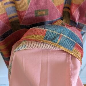 Vibrant geometric dress with sequins, side zip and liner. Perfect for weddings, date night, or any special occasion.