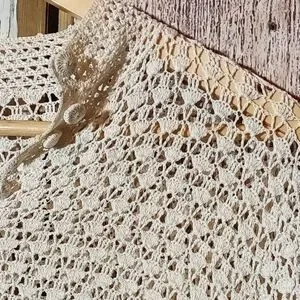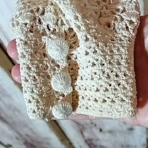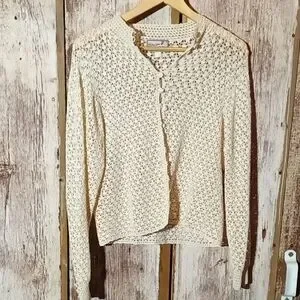 Cream Knit Button-Up Cardigan Crochet Grannyknit Cottagecore Vintage Medium