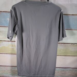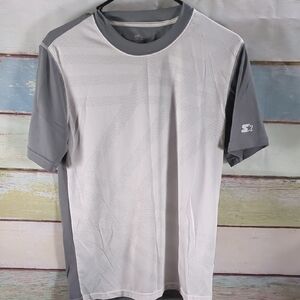 This STARTER tee features a modern two-tone design with a heather gray body and solid gray accents on the sleeves and collar. Crafted from lightweight performance fabric, it offers comfort and style for both casual and athletic wear.