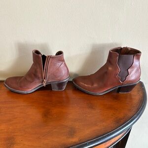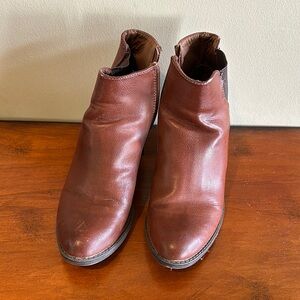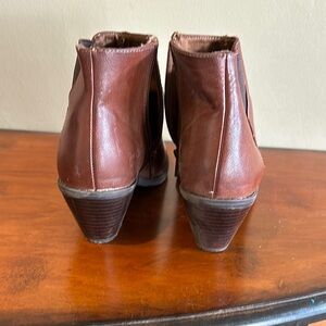 Stylish brown leather ankle boots with side zippers. Perfect for casual wear. Sonoma brand. 7