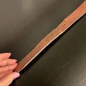 Overal signs of wear, solid brass belt buckle(shows the most signs of wear and needs polishing)