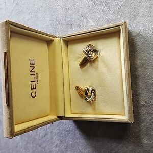 NIB Celine Gold Silver Square Cufflink Button