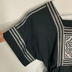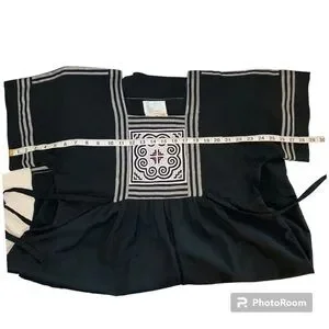 Size Medium- generous fit because it the adjustable ties in side- please see measurements in pics