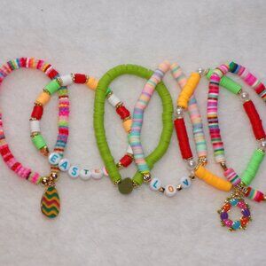 ~6PC Easter Egg Gold Charm Stretch Bracelet Set