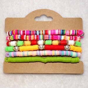 ~Yellow, Pink, Orange, Green & Red Round & Flower Shape Clay Heishi Flat Beads