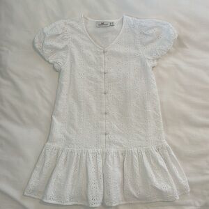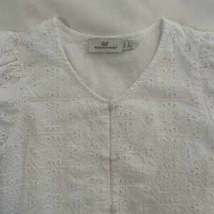 Adorable girls vineyard vines white eyelet dress. Size S (7/8). Covered buttons down the center with a drop waist bottom. Slightly puffed sleeves. Like new condition. No stains. Non smoking home. Will ship in 24 hours.