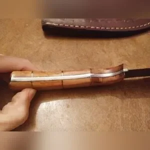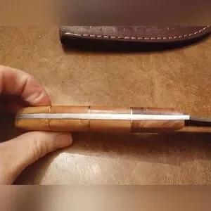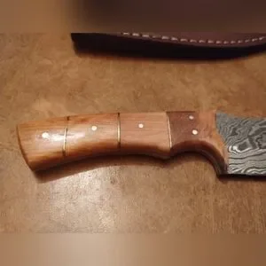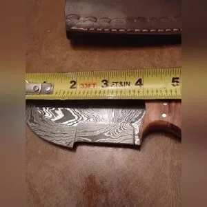 New Damascus steel blade men's hunting knife with sheath light brown handle