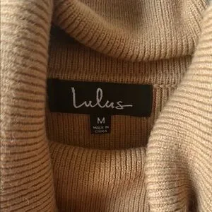 Lulus “Lets Cuddle Tan Cowel Neck Sweater”