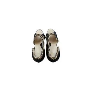 Giuseppe Zanotti Black Leather Gold Chain Peep Toe Stiletto Pumps Women’s 9.5