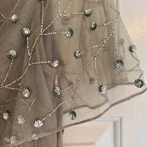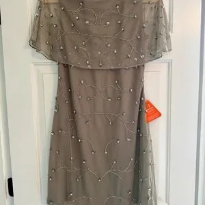 This elegant gray dress features intricate embellishments, perfect for special occasions. Its sophisticated design ensures you stand out with style. NWT.