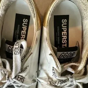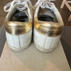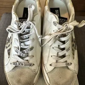 Golden Goose Womens White Sneakers with Leopard Star 36