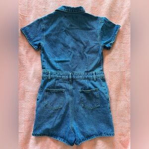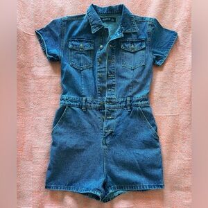 Chic blue denim romper with button-up front and short sleeves. Perfect for casual outings. Never worn/New without tags