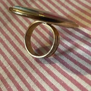 Colorful Tarina Tarentino Barbie ring with a rainbow design. Features vibrant pink, yellow, and green hues.