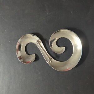 Silver Tone Stylized Letter Initial S Statement Brooch Pin. Size is shown in photos.