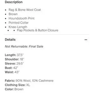 Rag & Bone Darwen coat, size medium, wool & cashmere houndstooth coat