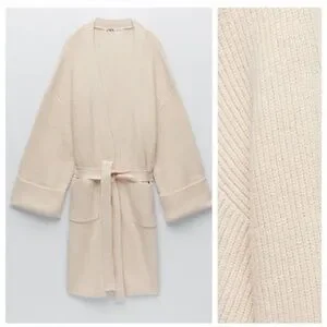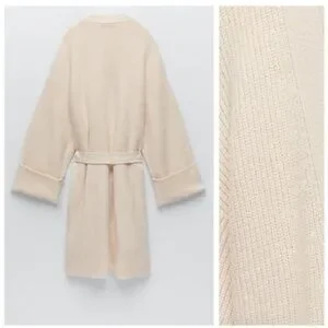 Zara Belted Knit Cardigan Knit Coat NWT