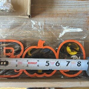 Festive Halloween sign featuring 'Boo' with pumpkins and a ghost. Perfect for seasonal decor. Standup and light up