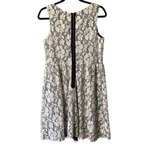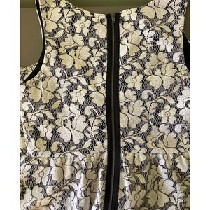 Xhilaration sleeveless lace party mini dress, size L, black with full white lace overlay, zip closure in back, round neck, some stretch, fully lined, floral lace, coquette, girlhoodcore, feminine, party dress, event dress, wedding guest, skater girl, holiday, cottagecore.
