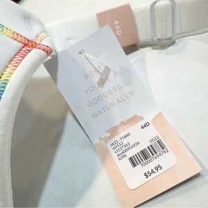 Cacique White Cotton T-Shirt Bra Rainbow Pride Strappy Back Front Closure, 44D