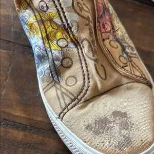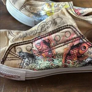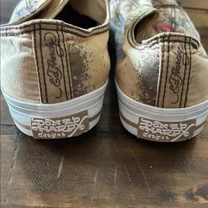 Ed Hardy Cream and Red Sneakers with Artistic Flair