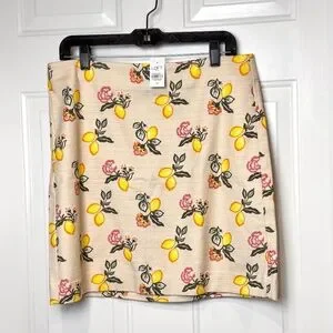 A NWT Loft Outlet skirt with cute lemon pattern, A-line and above the knee. Measures approximately 19" from waist to hem and 17" flat at waistline.