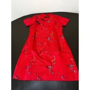 SARTORIA RED BLACK Oriental Style Dress - Floral - Size Medium New Without Tags