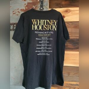 Black t-shirt featuring a Whitney Huston 2010 Tour graphic design.