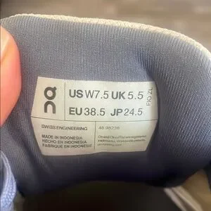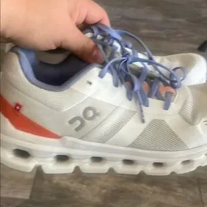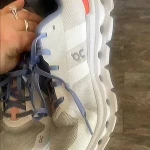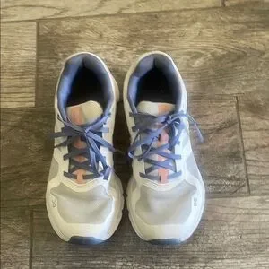 Women On Cloud shoes in white and periwinkle in size 7. 5. Shoes are in good preowned condition please review all pics. The color is periwinkle not blue.