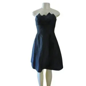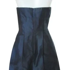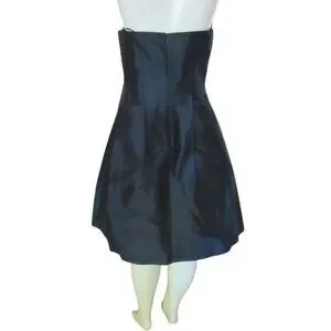 This vintage Trina Turk dress features a strapless silhouette with a ruffled neckline, combining elegance and sophistication for formal gatherings. The size tag has been removed but it fits me and I am a size 4. Please see the measurements and photos. In nice shape. Lined dress. 2 hidden pockets are found in the front of the dress.