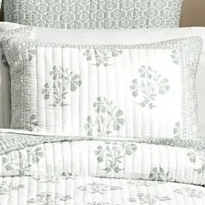 Ballard Designs pair of Ava block print standard pillow shams quilted tie back
