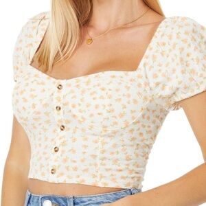 White and orange floral crop top with cap sleeves. Can be worn off shoulder or not! Reminds me of a cute free people top!